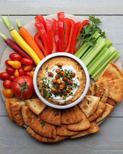 Place all hummus ingredients into food processor and blend until smooth and creamy. Add more oil or water if necessary to reach desired thickness.