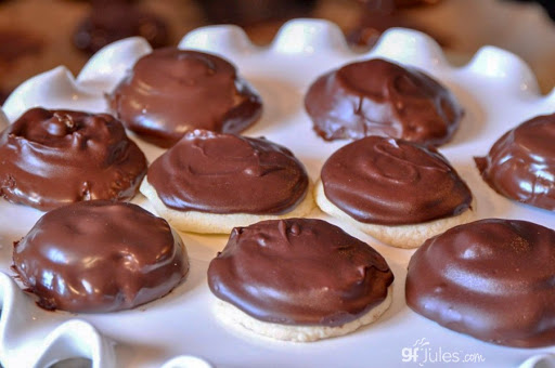 Girl Scout Cookie “season” doesn’t have to mean deprivation for those of us living gluten free, just make your own gluten free girl scout cookies; my Gluten Free Tagalongs recipe is a great place to start … or to finish. I mean, what could be better than chocolate and peanut butter layered together overtop of a delicious cookie base? That’s a gluten free Tagalong!