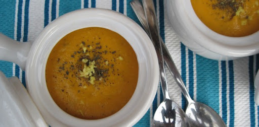 Once carrots are soft, use an immersion blender to mix until soup is smooth and creamy. If you don’t have an immersion blender, add it to your food processor, like I did.