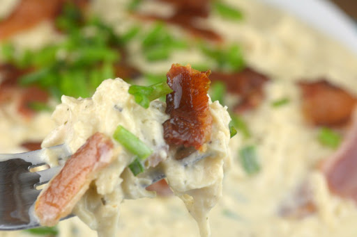 Keep your IP on low Add chicken back in. Add cheese and stir. Stir in bacon and enjoy over mashed potatoes, noodles, or rice.
