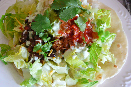 Put shredded pork and Barbacoa Enchilada Sauce in crock pot and cook on low for 2 hours.