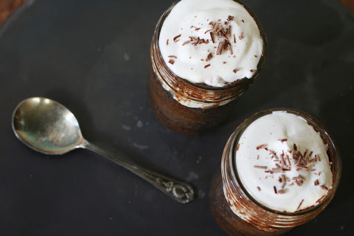 The cakes will stay good in the fridge for about a week. I didn't go through a full canning process for these. Also, take note that the cakes will overflow over the jars while they cook, which makes for a picture perfect jar full of bubbling-over chocolate goodness.
