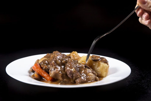 Pour the pork roast slices, carrots and potatoes back into the gravy and mix gently to coat them with the gravy.