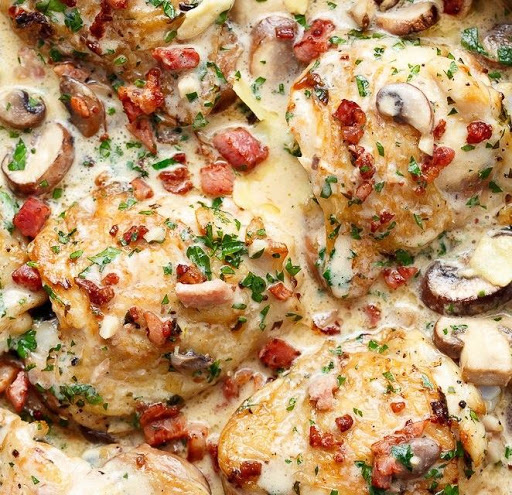 Creamy-Garlic Parmesan Mushroom Chicken & Bacon
