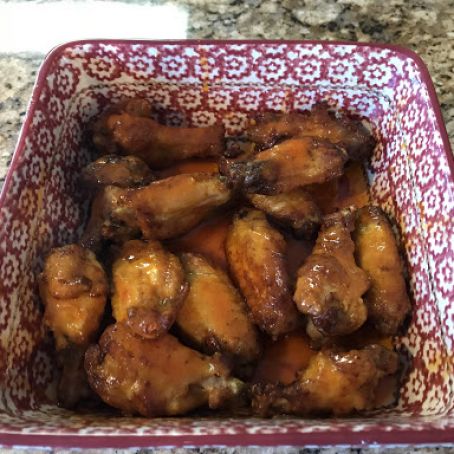 Take 1/2 of the sauce mixture and coat the wings and drummies evenly. Put into a preheated air fryer at 400°F. Cook (shaking a few times through the cooking process) until nice and brown - about 20 to 25 minutes. Take out of air fryer and coat the cooked pieces with the remaining sauce.