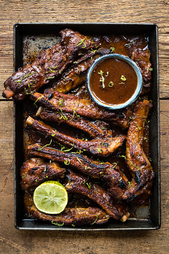 Meanwhile preheat the grill (broiler). Liberally brush the ribs with the sauce then cook for 2-3 minutes until slightly charred and sizzling.