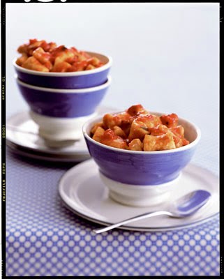 Fill an 8-quart stockpot with water and bring to a boil. Add half the gnocchi (so that they don’t stick) and gently stir. Cook until the pasta is tender and no longer translucent in the center, 4 to 6 minutes. The gnocchi should be floating. Lift them out with a slotted spoon and transfer to a large serving dish. Cover with aluminum foil. Repeat with the remaining gnocchi and top with sauce. Serve immediately.