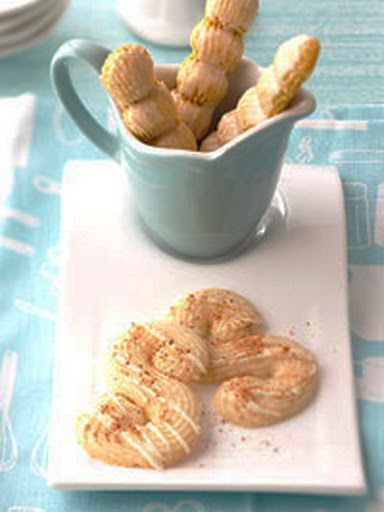 2. Place dough in a pastry bag fitted with a 1/4-inch open star tip. Pipe dough in 3- to 4-inch-long letters or other shapes about 1 inch apart onto an ungreased cookie sheet.