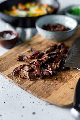 18/02/18 - These are yummy. I had some shiitake that I bought for something but didn't wind up using them. I was making Chicken Caesar salad for dinner and looked up something to do with the mushrooms. These are crispy and really very "baconish". They'd be good on salads, soups, rice bowls, etc. Look up other recipes and I saw some with sesame oil or with maple syrup and liquid smoke, etc.
