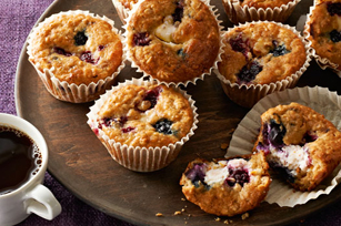Spoon half the batter evenly into muffin cups lined with 12 extra-large or giant paper liners. Top each with scant tablespoonful of cream cheese mixture; cover with remaining batter.
