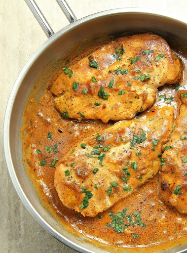 "Skillet Chicken in onion cream sauce