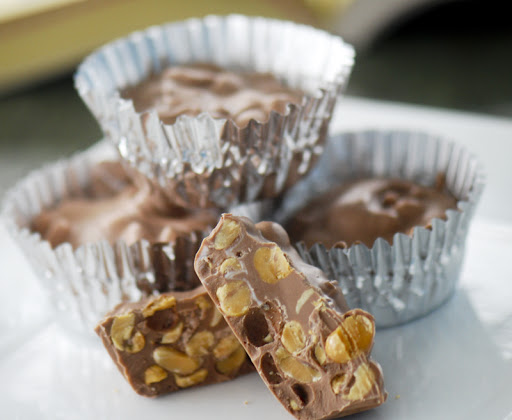 After 3 hours, stir the mixture with a wooden spoon until smooth. Drop the candy into cupcake pan liners using about 2 tablespoons per liner. Allow the candy to cool completely before removing the cupcake liners.