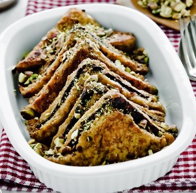 Chocolate and Pistachio French Toast with Warm Maple Syrup