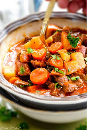 4. Cook on HIGH for 4-6 hours or on LOW for 8-10 hours or until vegetables and beef are very tender. Discard bay leaf. Season with salt and pepper to taste.