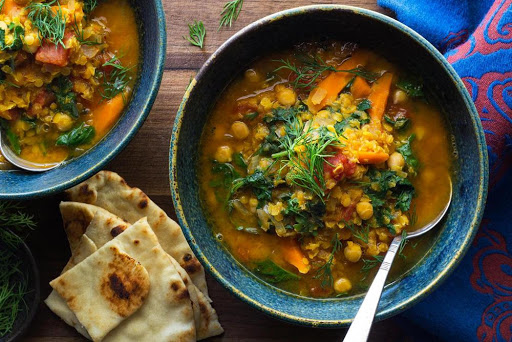 GARBANZOS - Chickpea and Lentil Curry with Toasted Pita