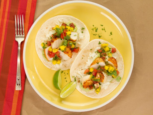 To assemble, toast corn tortillas, if desired, over an open flame just until slightly charred. Fill each tortilla with 2 tablespoons rice, 1 tablespoon guacamole, 1 seared and quartered scallop, and top with mango salsa. Repeat with remaining ingredients.