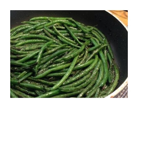 1. Heat the oil in a large nonstick skillet over medium-high heat. Add the garlic and cook for 10 to 15 seconds. Add the green beans and sear while stirring for one minute.