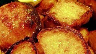 Method 1. Par-boil the potatoes in gently boiling salted water for about 8 minutes. Stop cooking before they’re cooked right through. 2. Leave to cool completely, then scratch roughly with a fork and season with a little fine salt. 3. Only roast around the joint if there is plenty of fat – at least ½cm/¾in in the tin – and plenty of room. It’s better to preheat the oil in a separate pan, adding any beef fat from the roasting tin just before the potatoes go in. Don’t add the potatoes until the oil is sizzling hot. Baste or turn the potatoes (carefully) as soon as they go into the pan so they have a light coating of oil from the start. 4. Roast for the last 45 minutes of your joint’s cooking time, turning at least once. If they look like they could use a bit more browning/crisping, leave them in after the joint has come out to rest, while you increase the heat for the Yorkshire pudding. 5. Then, when the preheated pudding tin is ready you’ll have to decide whether the potatoes come out, or stay in for the full 15 minutes of pudding time. 6. Drain well and keep in a warm oven, uncovered and not too piled on top of each other. Season again with salt and pepper before serving. AND Preheat your oven to 400 degrees Fahrenheit. Peel and cut potatoes into bite-sized pieces (the English call their preferred type "floury potatoes" - which generally means any potato that you'd usually use for mashing or frying). Put them in a pot of cold salted water and heat to boiling. Boil for about five minutes. Drain in a colander, and then shake the colander lightly to soften the outside of the potatoes. This is what turns into the crunchy-deliciousness that Isaac and I love. Cover the bottom of a roasting pan with vegetable oil, lard, or fat from your roast. Add the potatoes and stir until they are lightly covered in oil. Sprinkle with salt and pepper. If you want to add some extra flavor, add some fresh rosemary, oregano, basil, or some balsamic vinaigrette. If you want to add variety, you can also use carrots, onions, garlic, or parsnips (which no one in America ever eats, but they rock). Bake the potatoes until they are tender. I broil them for 10 minutes to get that extra crunch, but you have to keep your eye on them.
