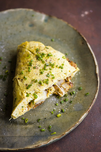 Tip: Don’t let the butter brown before pouring in the eggs. This means that the skillet is too hot, which will cause the omelet to overbrown on the bottom. The goal is a pale golden exterior.