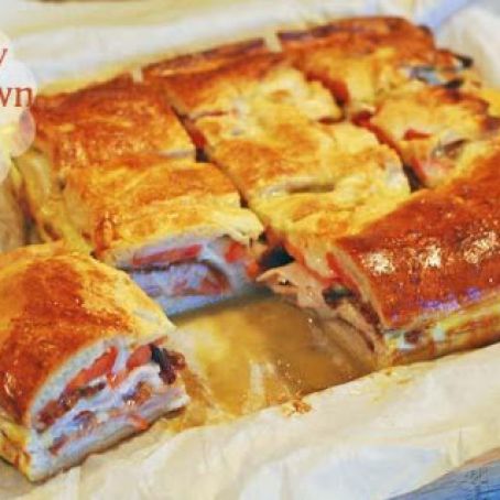Kentucky hot brown bake is layered with cheese, turkey and bacon...yum! This sandwich bake is easy to make and great for any occasion!