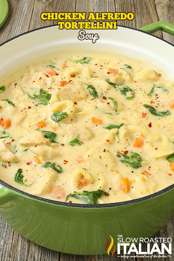 "Chicken Alfredo Tortellini Soup