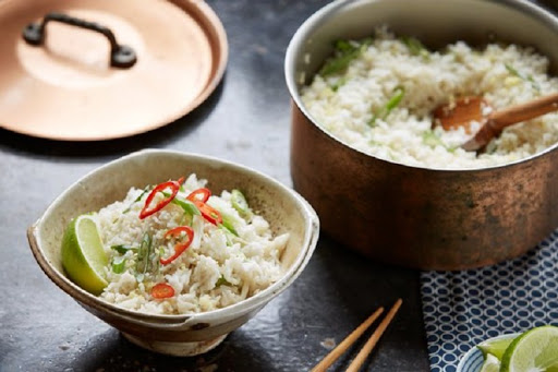 Remove from heat, and stir in scallions and ginger. Add a little more coconut milk if rice is too dry. Season to taste with salt. Serve.