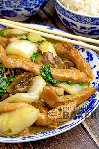 Add the bok choy and mushrooms (if using). Stir fry until green bok choy leaves are bright green. Stir in sauce and cook until sauce bubbles and thickens; cook for 1 minute.