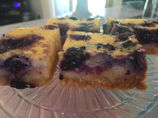 The pie bars are good at room temperature or chilled, served unaccompanied or brought to the table with lightly sugared blueberries, mixed berries or blueberry syrup. They certainly don’t need it, but they’re nice with whipped cream.