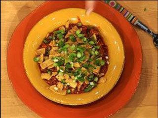Season the chili with salt and freshly ground black pepper. Serve with some crushed fritos and chopped scallions on top.