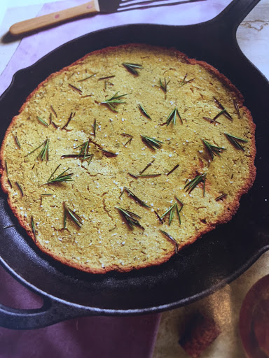 Preheat oven to 450, 10 minutes before baking, place a 12-inch oven-proof, nonstick skillet in oven to heat. Pour 2 tablespoons olive oil in pan and swirl to coat bottom and sides. Whisk rosemary into batter and pour into oiled pan. Bake 10-15 minutes, until edges are crispy brown and top is browned in spots all over. (Note: if you're topping the socca, bake it for 8 minutes then add toppings then continue baking.)