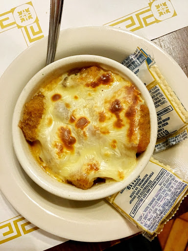 02.Pour in the cream and add the cheese, then season well. Transfer the soup, in batches, to a jug blender and whizz until completely smooth (or use a stick blender). Return the soup to the pan, taste and season, then add the remaining wine. Heat until steaming.