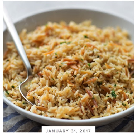 In a large skillet set over medium-low heat, add the olive oil. When the oil is hot, add the vermicelli and cook until brown, about 4-6 minutes. Add the rice and cook until it turns bright white, about 5-7 minutes.