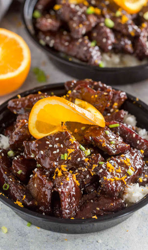 "Sticky Orange Beef