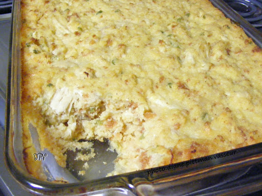 Traditional Southern holiday dish, but is enjoyed any time of the year. Cornbread dressing is baked with the addition of cooked chicken.