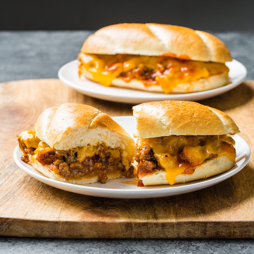 3. Place rolls on rimmed baking sheet. Divide meat mixture evenly among roll bottoms. Top each sandwich with 2 slices American cheese. Bake until cheese is melted and rolls are warmed through, about 5 minutes. Divide remaining sauce equally among sandwiches. Fold roll tops over meat and serve.