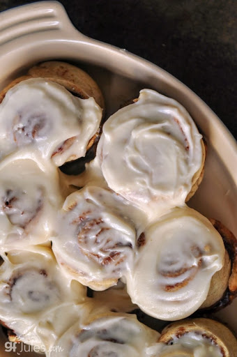 Unroll each until the end of the dough can be tucked under the bun so that the cinnamon-sugar mixture won’t leak out of the bottoms during baking. Place one bun in each buttered muffin cup.