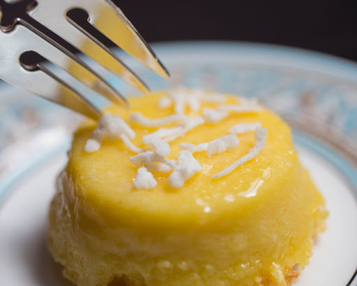 3. In a blender, add egg yolks, ½ cup plus 1 tablespoon of the sugar, the melted butter, the coconut mixture and the vanilla. Mix for 2 minutes.