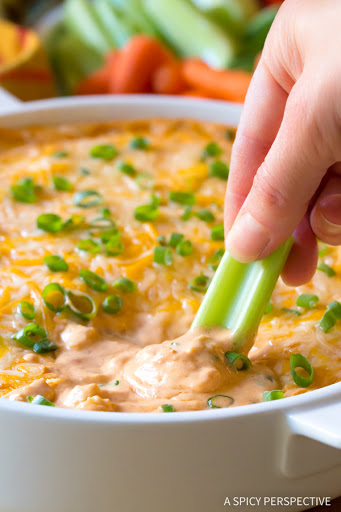 Pour the creamy enchilada sauce over the shredded cheese. Bake for 30 minutes. Then pull the dip out of the oven and sprinkle the top with the remaining 1/4 cup shredded cheese. Garnish with fresh chopped scallion or cilantro if desired. Serve warm with baked veggie chips or raw vegetables.