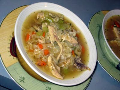 When you are sniffly, sneezy and otherwise sickly, the last thing you want is to spend two days making chicken soup. Yet somehow canned soup never feels as therapeutic as homemade. Here is a faster method to get the homemade chicken soup we desire. Browning the chicken created browned caramelized bits in the pan and then sautéing some garlic and onions’, and then deglazing the pan intensely flavors the soup. Dredging the chicken with flour before browning creates a roux to flavor and thicken the soup. There is no potatoes in the soup because they cloud the soup and absorb too much of the liquid. It is important that all the vegetables be cut into bite size portions. Staggering the addition of the vegetables to the soup accounts for the different cooking times. Cooking the pasta in the soup releases the starch which also helps thicken the soup but I don't cook the pasta in the soup because it absorbs all the liquid. I recommend cooking the pasta separately, al dente, and add to the soup just before serving.