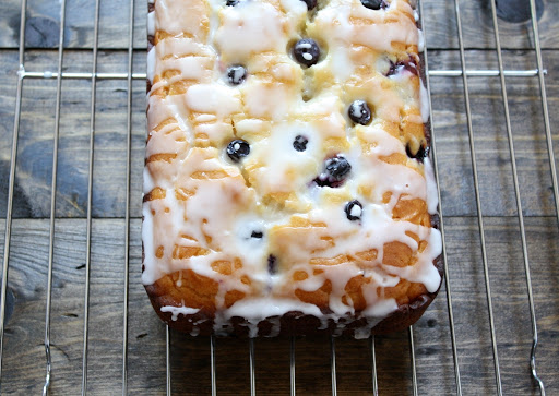 Use the remaining 1 tsp flour to toss with the blueberries, and gently fold the blueberries into the batter. Pour into a 9x5 inch greased loaf pan, and bake until a toothpick comes out clean, about 40-50 minutes. Let cool in pan for 15 minutes, then remove from pan onto a wire rack to cool completely.