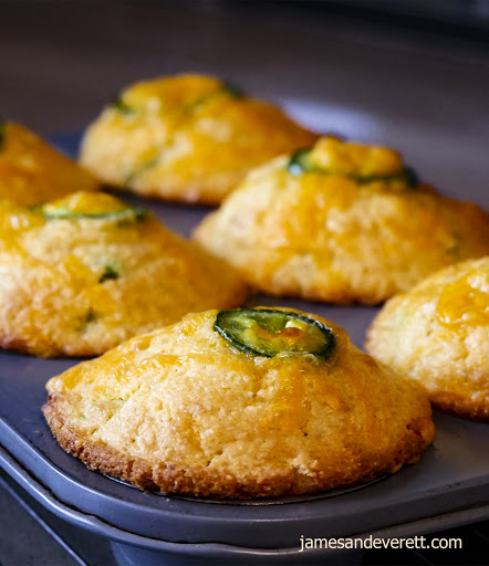 Tender and sweet with a touch of heat, these jalapeno cheddar cornbread muffins make the perfect side to any BBQ or Southwestern dish. Sharp cheddar delivers a subtle tang to these easy to prepare muffins. Creamed corn makes these handfuls of love moist and delicious.