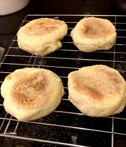 Slice with a serrated bread knife 2 times each to make into English Muffins, just perfect for toasting! Makes 9-10 popover buns (equals ~30 individual muffins).