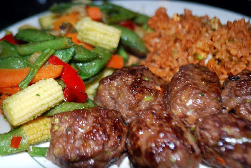 Serve these garlicky, spicy meatballs with steamed sugar snap peas and two cups cooked rice tossed with 1 tablespoon chile paste—you'll find it on the ethnic aisle of most supermarkets or at Asian grocers