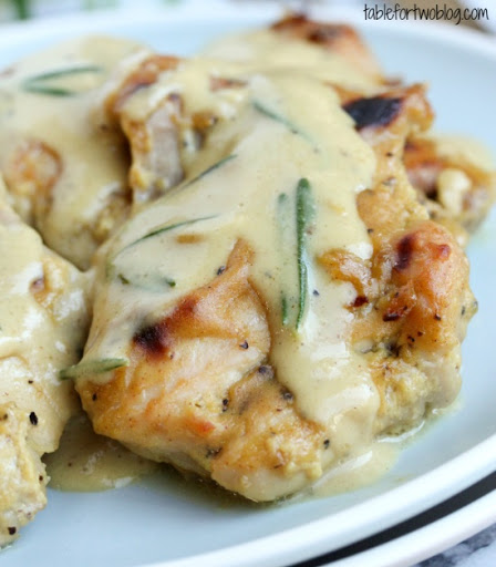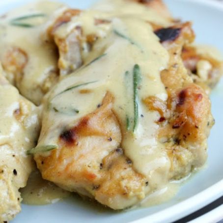 Immediately after plating chicken, whisk in the cornstarch into the liquid in the pan. You'll create a nice, thick sauce to drizzle over your chicken. Sprinkle rosemary on top before serving.