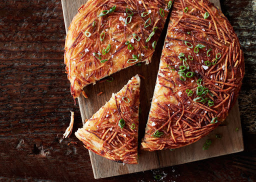 DO AHEAD: Hash browns can be made 1 hour ahead. Place on a wire rack set inside a large rimmed baking sheet and keep them in a 200° oven. Top with scallions before serving.
