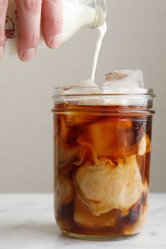 Strain twice through a coffee filter, a fine-mesh sieve or a sieve lined with cheesecloth. In a tall glass filled with ice, mix equal parts coffee concentrate and water, or to taste. If desired, add milk.