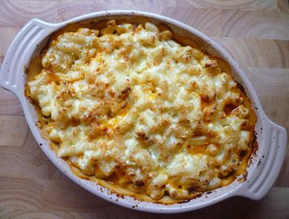 If you’re going to be serving this now … When the Bolognese has been simmering for 40 minutes, preheat your oven to 180 C/160 fan/350 F/gas4 and get cracking with the macaroni topping.
