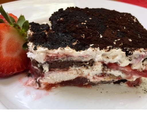 2. Break the sheets of graham crackers in half. Arrange 9 (of the 18) squares on the bottom of an 8-inch square pan. (Note: there will be a small space between the crackers.) Brush 2 tablespoons of jam on the crackers and top with 1 1/2 cups of the whipped topping. Smooth the topping and evenly layer 1/2 of the strawberry slices on top. Repeat with remaining crackers, jam, berries.