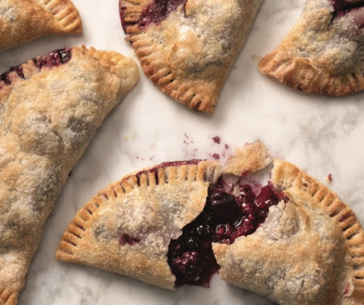 2. Preheat the air fryer to 350°F. Spoon about 3 tablespoons of berry mix onto half of a pastry round and carefully fold empty pastry over the top to form a half moon (packet will be plump). Press edges together and tightly crimp with a fork. Using the fork or a sharp knife make a small vent or two in the top of each pie. (The pies can be placed in the refrigerator at this point. Cover loosely with foil. They are best cooked the same day you make them, but I have also cooked them with good success the next day. Not wrapping them too tight keeps the dough from getting soggy.)
