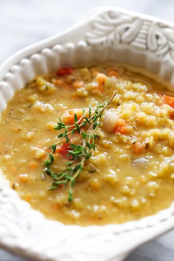 In a 3 1/2 quart or larger slow cooker, combine the lentils, celery, carrots, onion, garlic, and ham. Season with basil, thyme, oregano, the bay leaf, and pepper. Stir in the chicken broth, water, and tomato sauce. Cover and cook on low for 11 hours. Discard the bay leaf before serving.